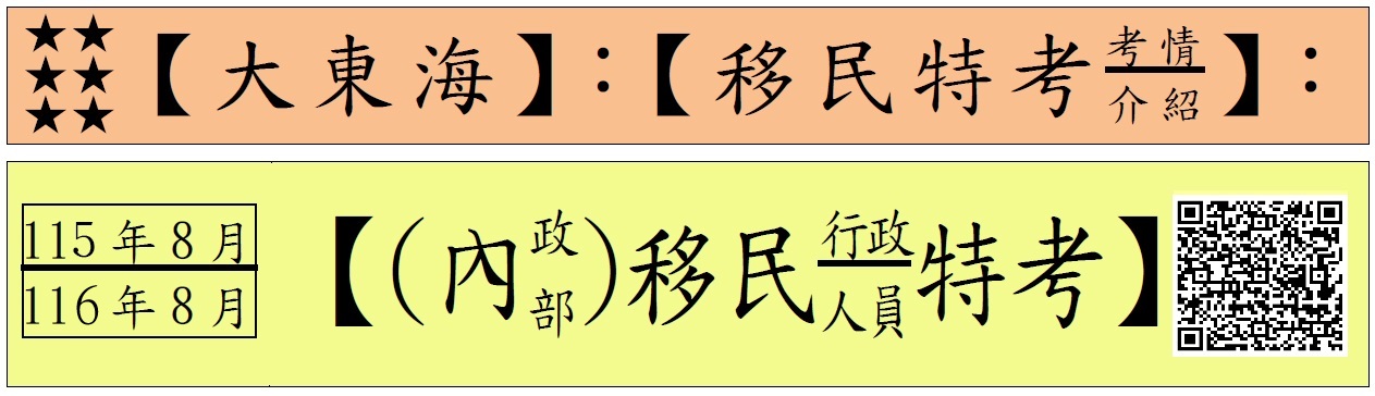 (三)【移民(二等)】:【研究所畢】暨【以上學歷】→男女皆可報考!(年18歲以上,不限最高年齡)!