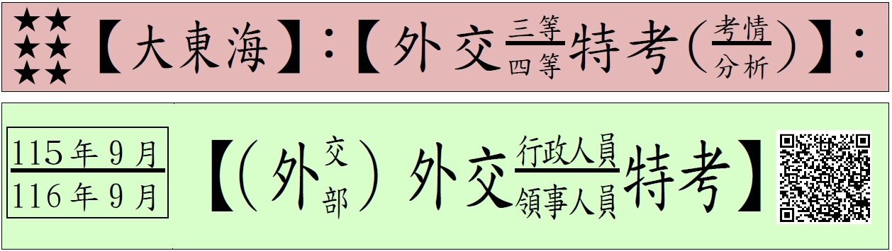 (一)【外交(三等)】:【大學畢】暨【以上學歷】,年18~45歲→男女皆可報考!(男需役畢或免役)。