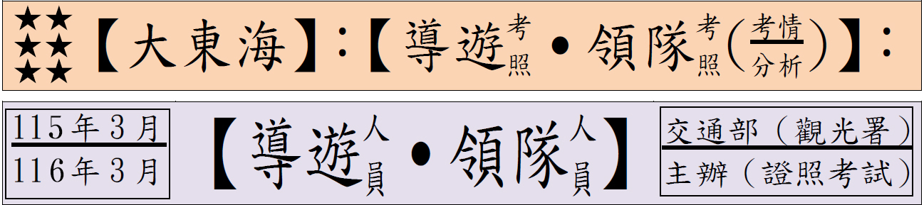 ※【註】:自【(113年度)起】→為因應【發展觀光條例】之【修正與實施】→【(導遊人員、領隊人員)考試】,已改由【交通部(觀光署)】主辦考試!
