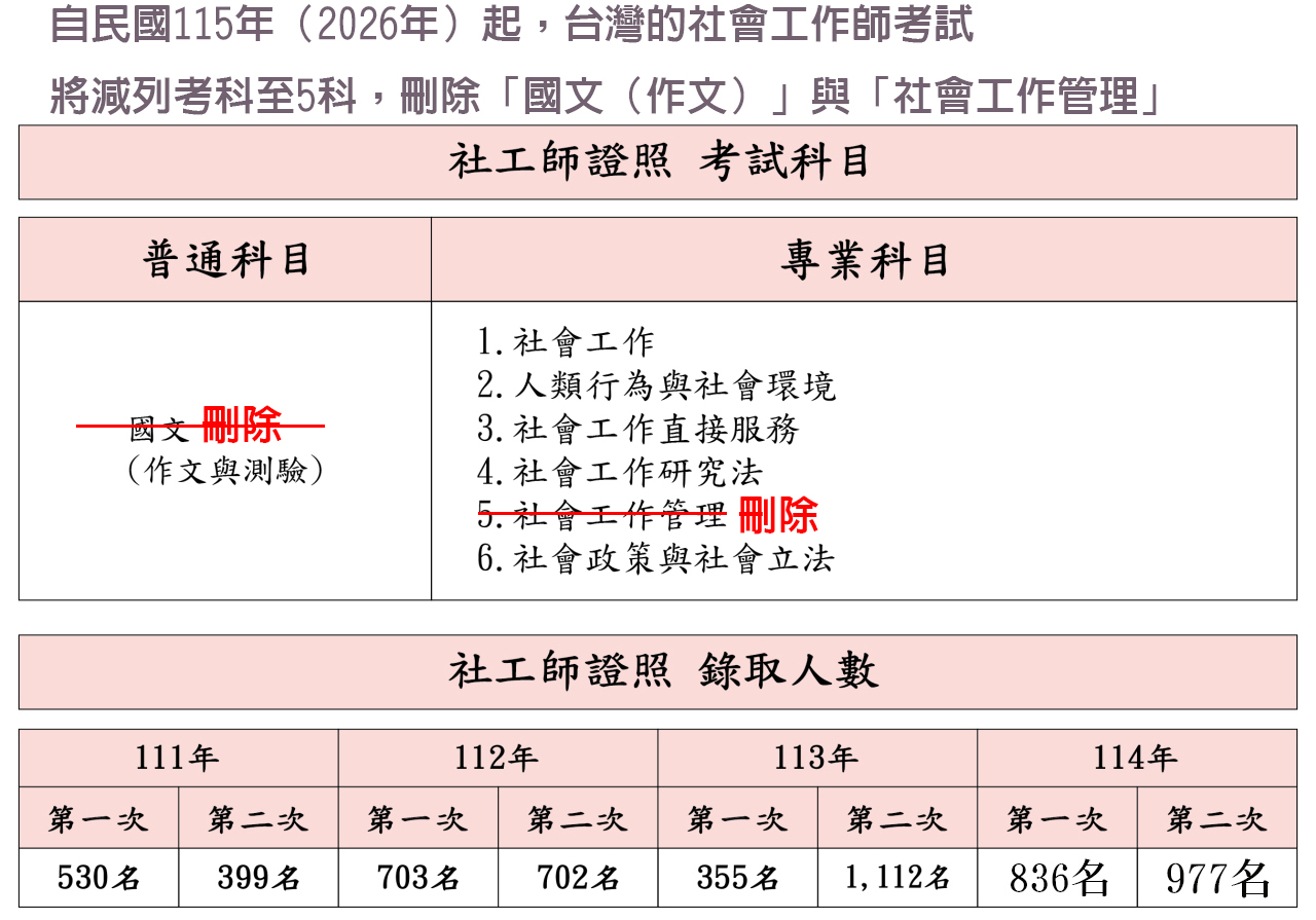【1】.【社會工作】~【相當科、系、組、所、學位學程】→係指開設之必修課程,包括「5領域各課程」,每一學科「至多採計3學分,合計15學科15學分以上」→且經【(考選部)審議通過】並公告,並曾修習「社會工作(福利)」實習或實地工作者!