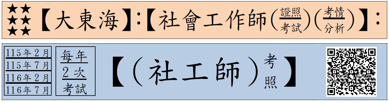 【2】.【專業科目(佔90%)】:◎(1)社會工作;◎(2)人類行為與社會環境;◎(3)社會工作直接服務;◎(4)社會工作研究法;◎(5)社會工作管理;◎(6)社會政策與社會立法。