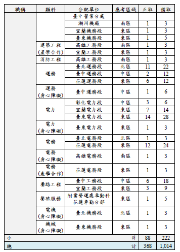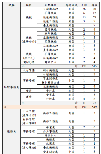【三】、【台鐵(115年3月中旬)招考新進人員(職務.分類)】