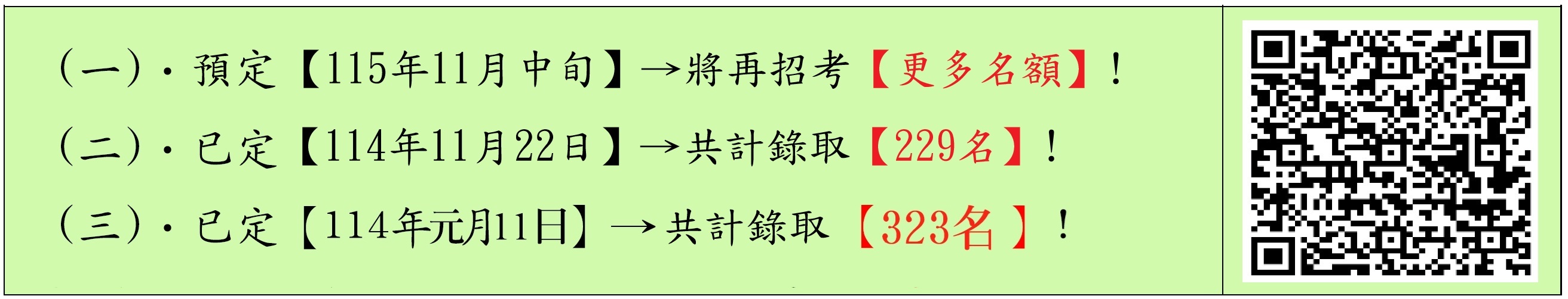 預定【115年11月中旬】→將再招考【更多名額】!