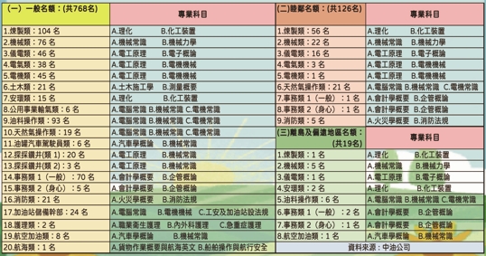 【招考類組、錄取名額、專業科目】~如下表: