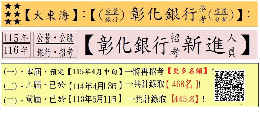 (一).【(彰化銀行)招考】:【第五職等(新進人員)】:月薪【37,050元】起薪!→