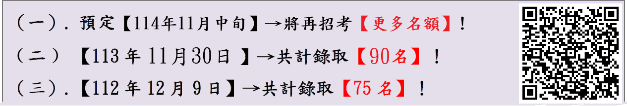 預定【114年(11月中旬)】→將再招考【更多名額】!