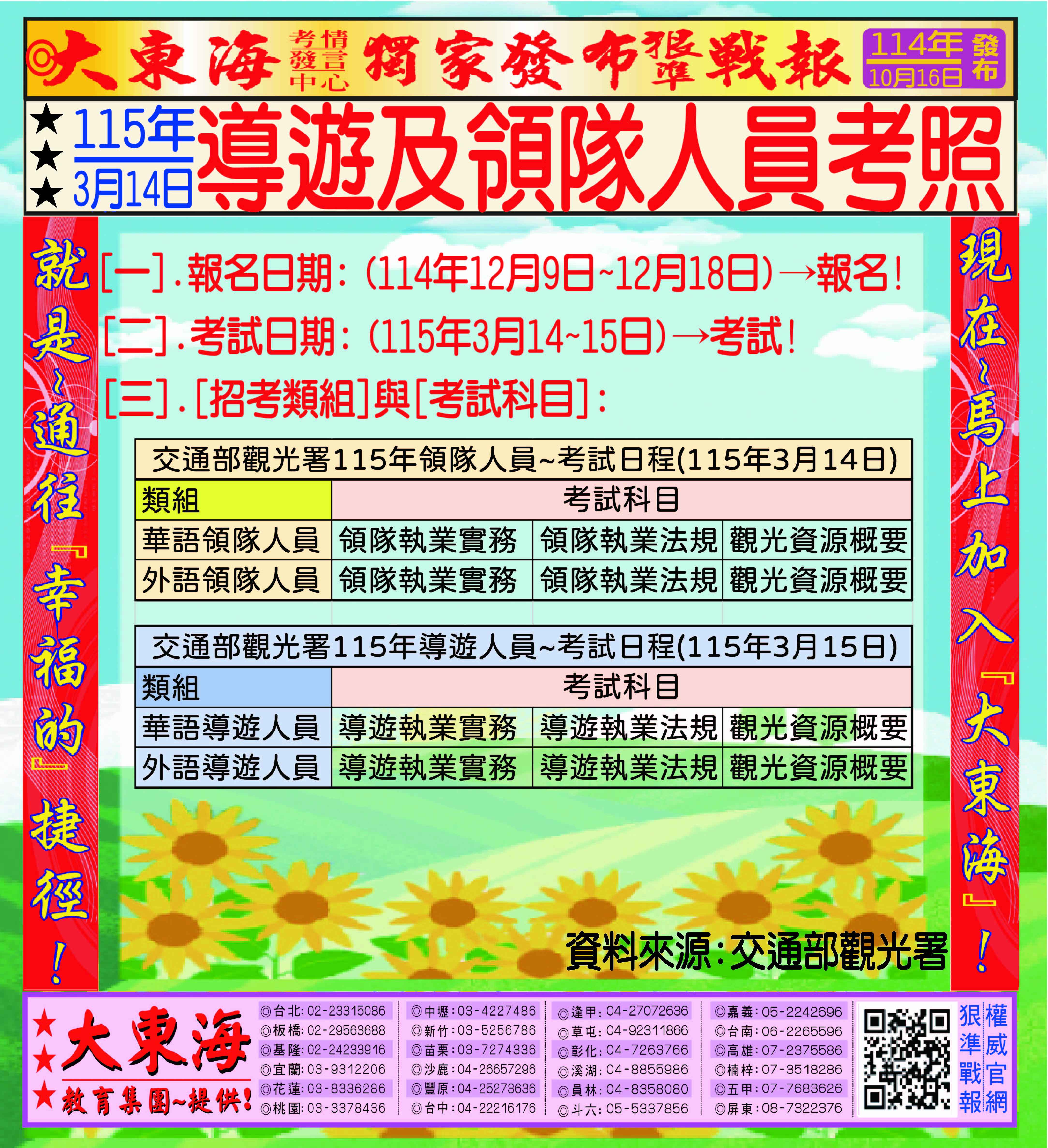 【導遊及領隊人員考照】將再錄取「更多名額」 !!