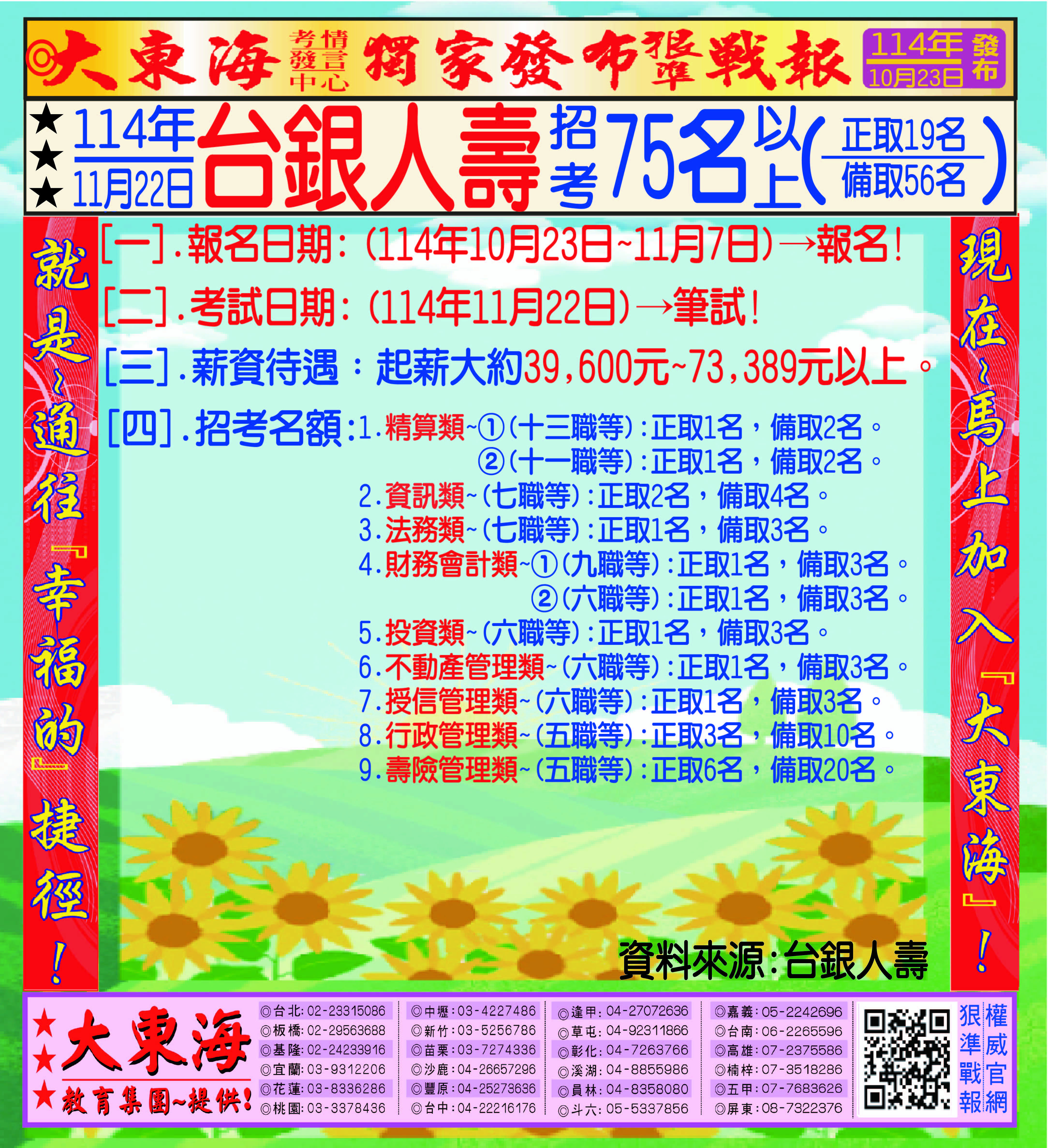 【台銀人壽‧114年‧新進人員】將招考「75名以上」!!